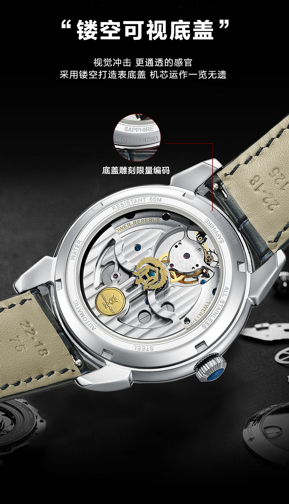 "每枚腕表底盖激光雕刻独立限量编号,确保收藏级品质。